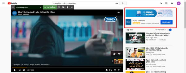 True View In Display on watch page : Đây là hình thức cho phép quảng cáo của bạn xuất hiện ở bên phải video mà người dùng *TKG2## đang xem. Bạn sẽ trả tiền quảng cáo nếu có người dùng click vào mẫu quảng cáo của bạn.